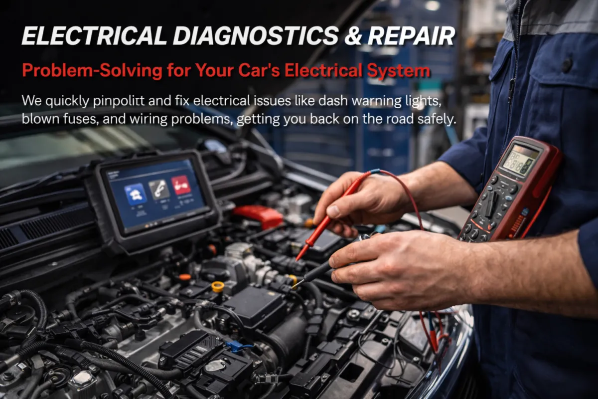 We provide auto electrical diagnostics, wiring repairs, battery services, starters and alternators, engine diagnostics, and general mechanical repairs.